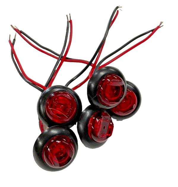 (5 PACK) 3/4" 12V Red LED Clearance Marker Bullet Light W/ Rubber Grommet Trailer