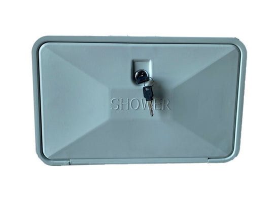 Condition: New Brand: ProCamp Manufacturer Part Number: WhiteShowerBox Part Type: shower box White Exterior RV Shower Box 51" Vinyl Hose Color: White Exterior Face Dimensions: 13-1/2" Wide x 8-1/2" Height Cutout Dimensions: 10-3/4" Wide X 5-3/4"...Price: $39.95 -