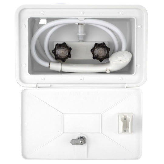 ProCamp RV Exterior Shower Box Kit Faucet Hose Cowboy Shower Outside White