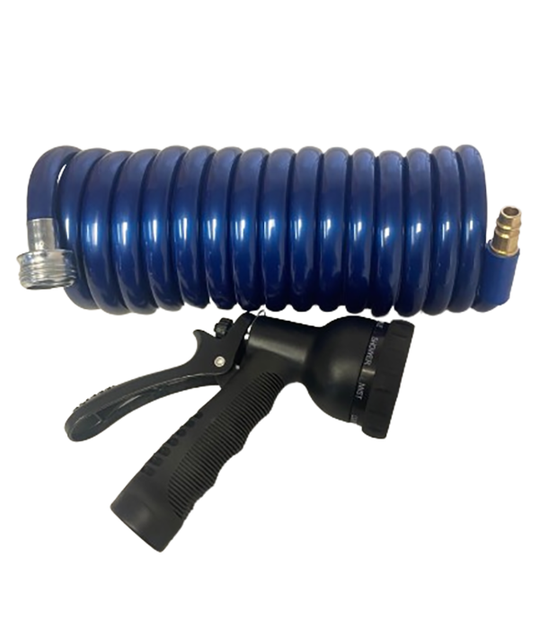 RV Spray Down Water Hose 15' Coil W/ Spray Nozzle To Quick Connect