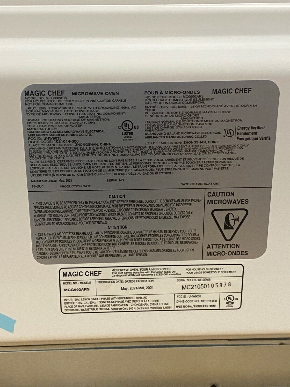 Model: MCG992ARS