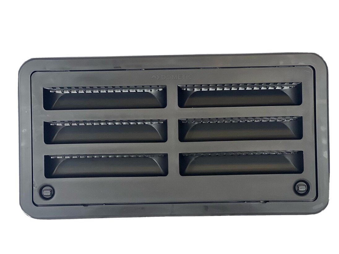 Ideal for Dometic refrigerator systems, this vent installs flush to the RV sidewall and comes in new condition, though may show light dust from warehouse storage.
