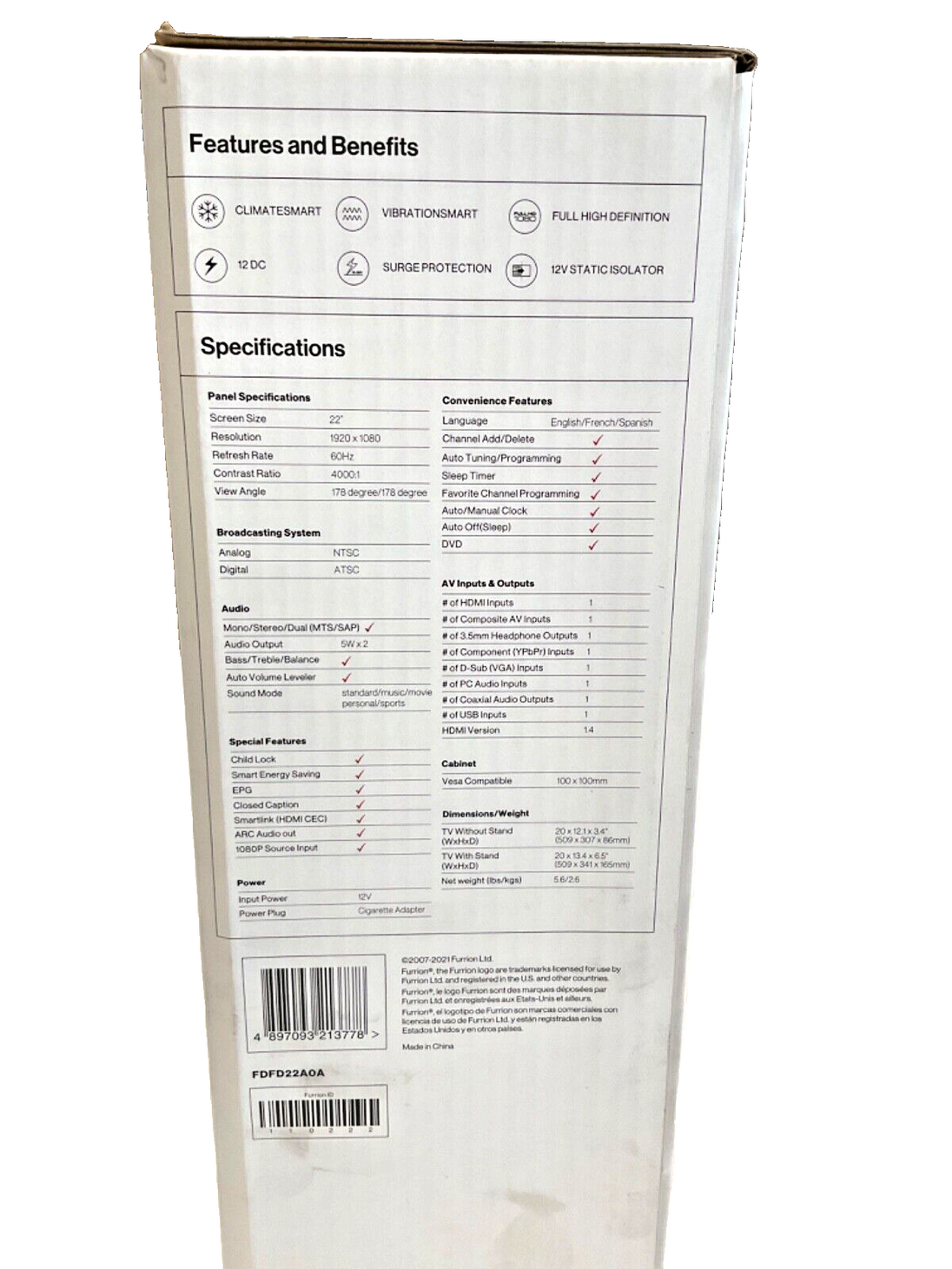 FURRION 32" LED HD TV FEHT32N8A 12V CIGARETTE ADAPTER W/ REMOTE RV/MOBILE USE