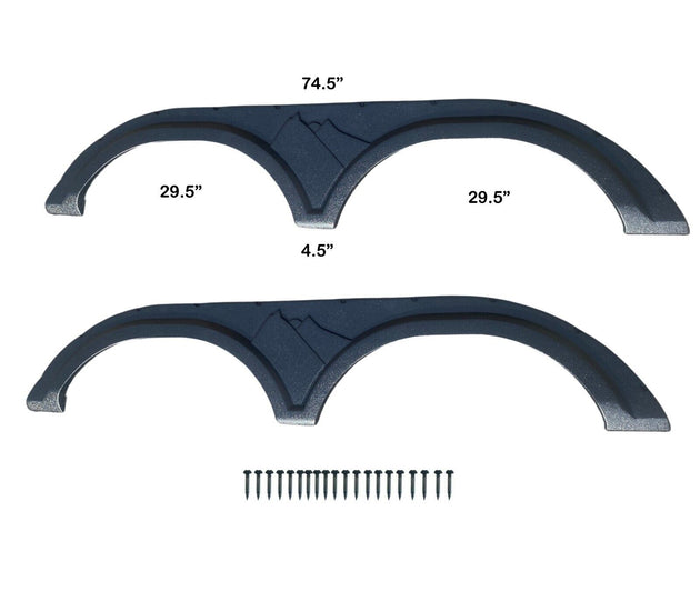 Set of Tandem RV Trailer Fender Skirts Flares 74.5" Black Camper Travel Trailer